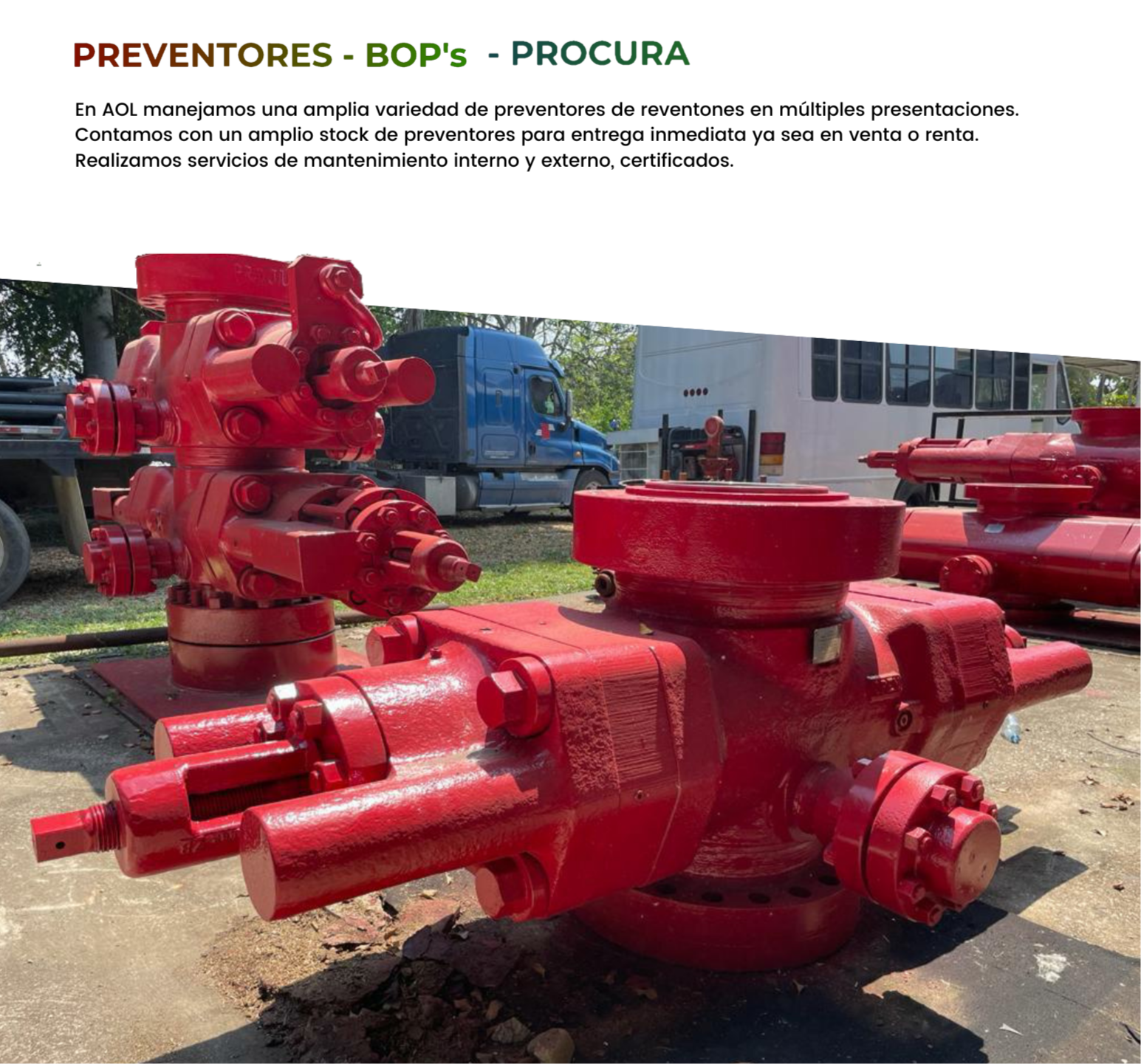Una válvula grande instalada en el extremo superior de un pozo, que puede cerrarse si la brigada de perforación pierde el control de los fluidos de formación. Mediante el cierre de esta válvula (operada generalmente en forma remota a través de accionadores hidráulicos), la brigada de perforación generalmente retoma el control del yacimiento, y se pueden iniciar los procedimientos para incrementar la densidad del lodo hasta que es posible abrir el BOP y mantener el control de la formación en términos de presión. Los BOP se comercializan en una diversidad de estilos, tamaños y presiones nominales. Algunos pueden cerrar efectivamente un agujero descubierto, otros están diseñados para cerrarse alrededor de los componentes tubulares del pozo (columna de perforación, tubería de revestimiento o tubería de producción), y otros cuentan con superficies de rotura de acero templado que pueden atravesar concretamente la columna de perforación. Dado que los BOP revisan una importancia crítica para la seguridad de la brigada, el equipo de perforación y el pozo en sí, son inspeccionados, probados y remozados a intervalos regulares determinados por una combinación de procesos de evaluación de riesgos, prácticas locales, y requisitos legales y de tipos de pozos. Las pruebas de los BOP incluyen desde la verificación diaria de sus funciones en pozos críticos hasta verificaciones mensuales o menos frecuentes en pozos con bajas probabilidades de problemas de control. el equipo de perforación y el pozo en sí, son inspeccionados, probados y remozados a intervalos regulares determinados por una combinación de procesos de evaluación de riesgos, prácticas locales, y requisitos legales y de tipos de pozos. Las pruebas de los BOP incluyen desde la verificación diaria de sus funciones en pozos críticos hasta verificaciones mensuales o menos frecuentes en pozos con bajas probabilidades de problemas de control. el equipo de perforación y el pozo en sí, son inspeccionados, probados y remozados a intervalos regulares determinados por una combinación de procesos de evaluación de riesgos, prácticas locales, y requisitos legales y de tipos de pozos. Las pruebas de los BOP incluyen desde la verificación diaria de sus funciones en pozos críticos hasta verificaciones mensuales o menos frecuentes en pozos con bajas probabilidades de problemas de control.